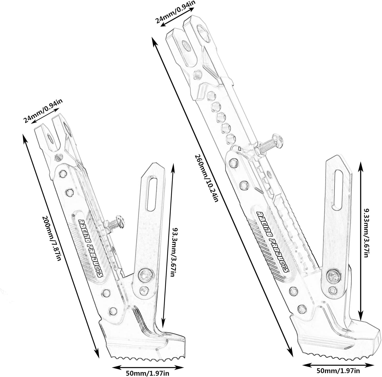 Nuestro soporte lateral universal no solo mantiene tu moto estable en cualquier terreno, sino que añade un toque estético que complementa su diseño.